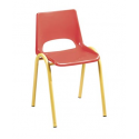 Coque injectée monobloc en polypropylène, résine teintée dans la masse. Fixation sur la structure par vis. Piétement monobloc en tube Ø 20 mm, ép. 1,5 mm, et traverse sous l’assise tube Ø 14 mm ép. 1,5 mm.